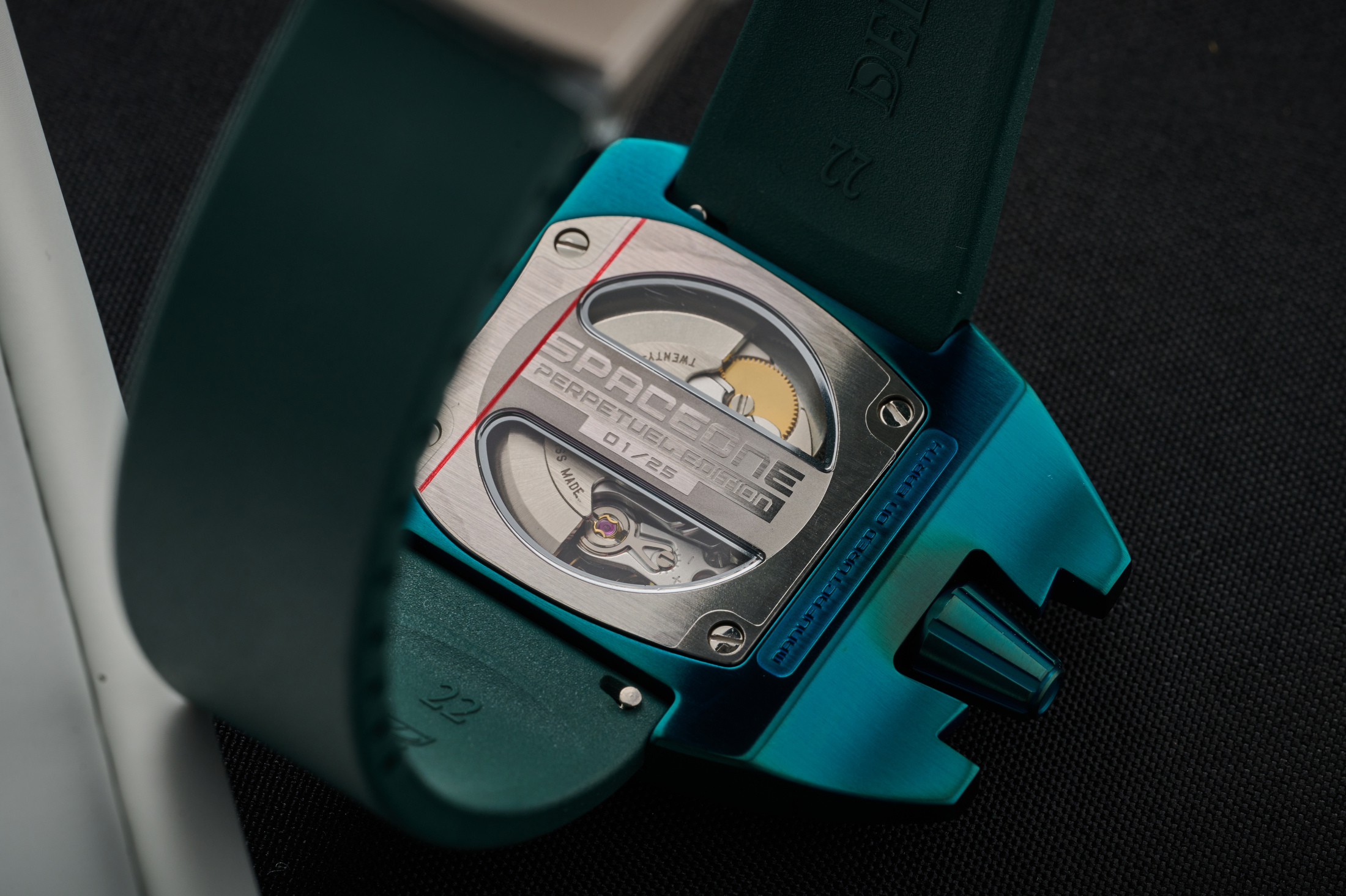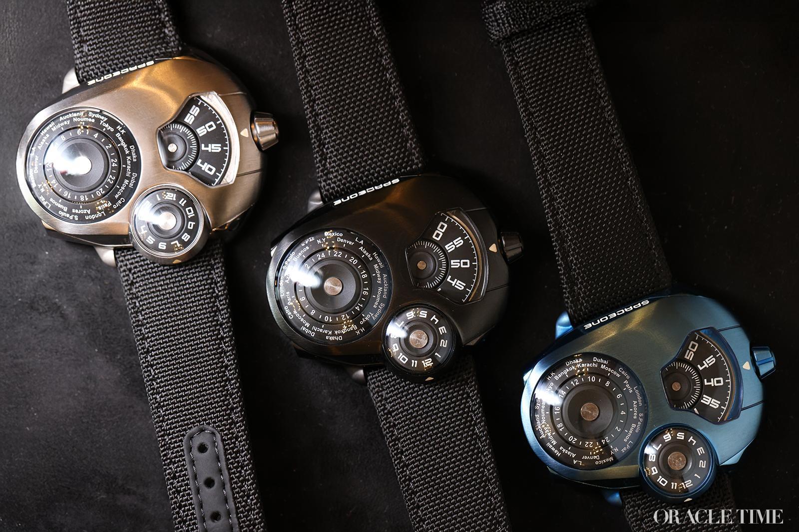 SpaceOne’s custom French-made modules — jumping hour, WorldTimer, Tellurium — sit atop standard Swiss movements, allowing complications of genuine horological substance to arrive at prices that actual enthusiasts can reach. The case language remains unmistakable: spacecraft geometry, no lugs, asymmetric layout.